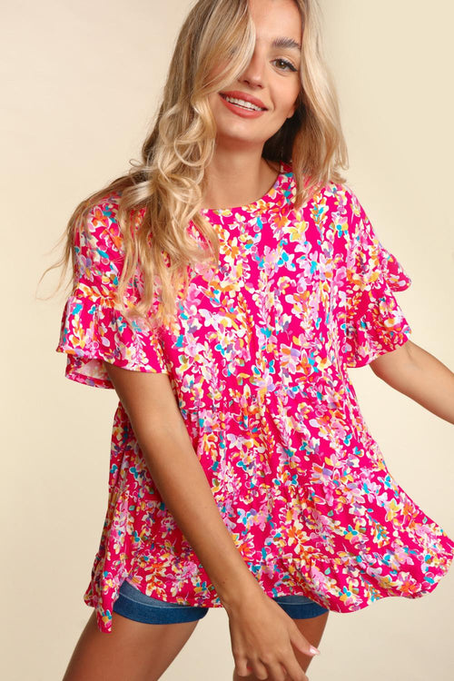 Woven Airflow V-Neck Puff Half Sleeve Top -