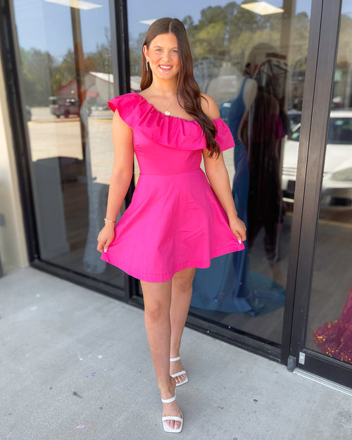 'Pretty in Pink' One Shoulder Babydoll Dress -
