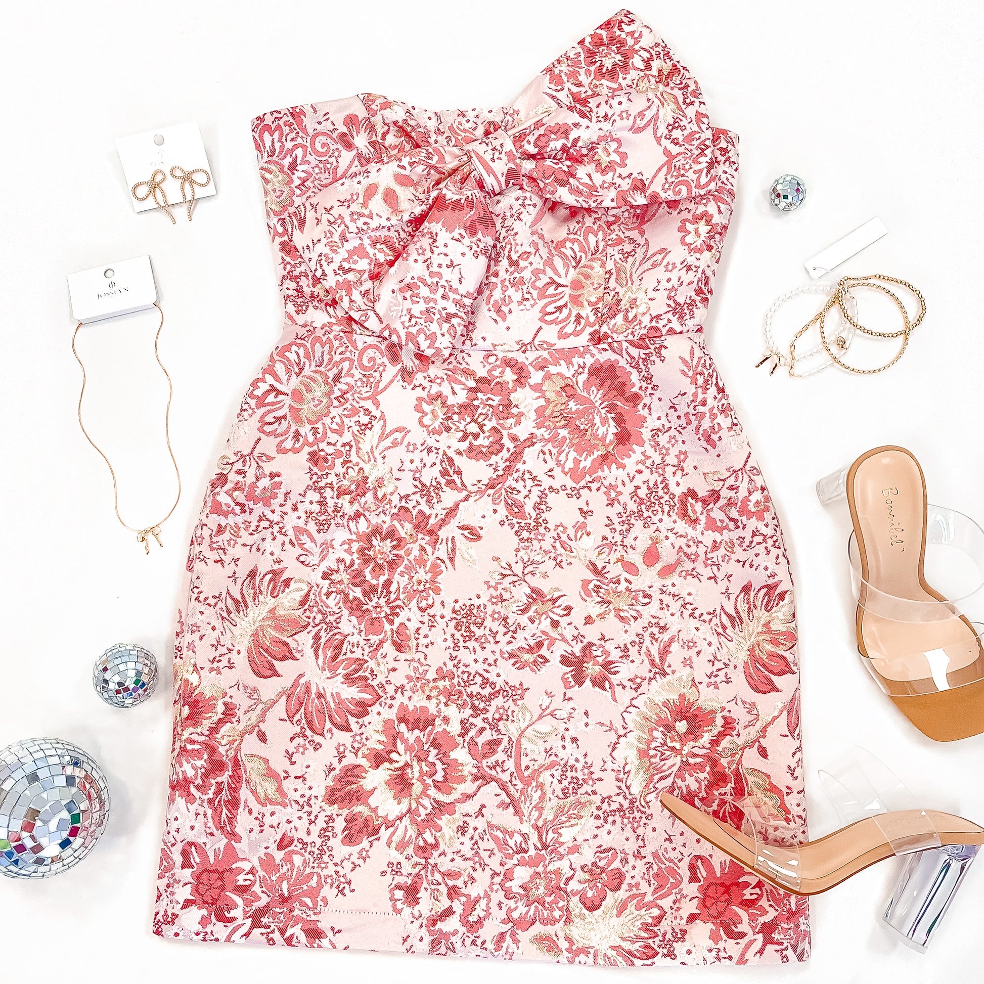 strapless floral jacquard mini dress